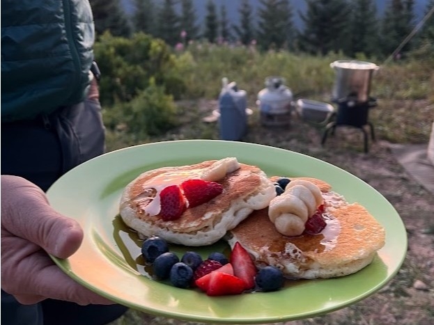 A hot breakfast is served between 6:00 and 6:30. French toast, hot cereal, pancakes, scrambled eggs or omelet will be some of the offerings during the week. Also available every morning are cold cereals, fresh fruit, yogurt, bagels, cream cheese, instant oatmeal, milk, juice, coffee, teas and hot chocolate.