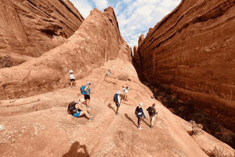 For hikers unfamiliar with navigating slickrock terrain, having experienced guides helps ensure the route remains safe while still allowing visitors to explore more remote landscapes.